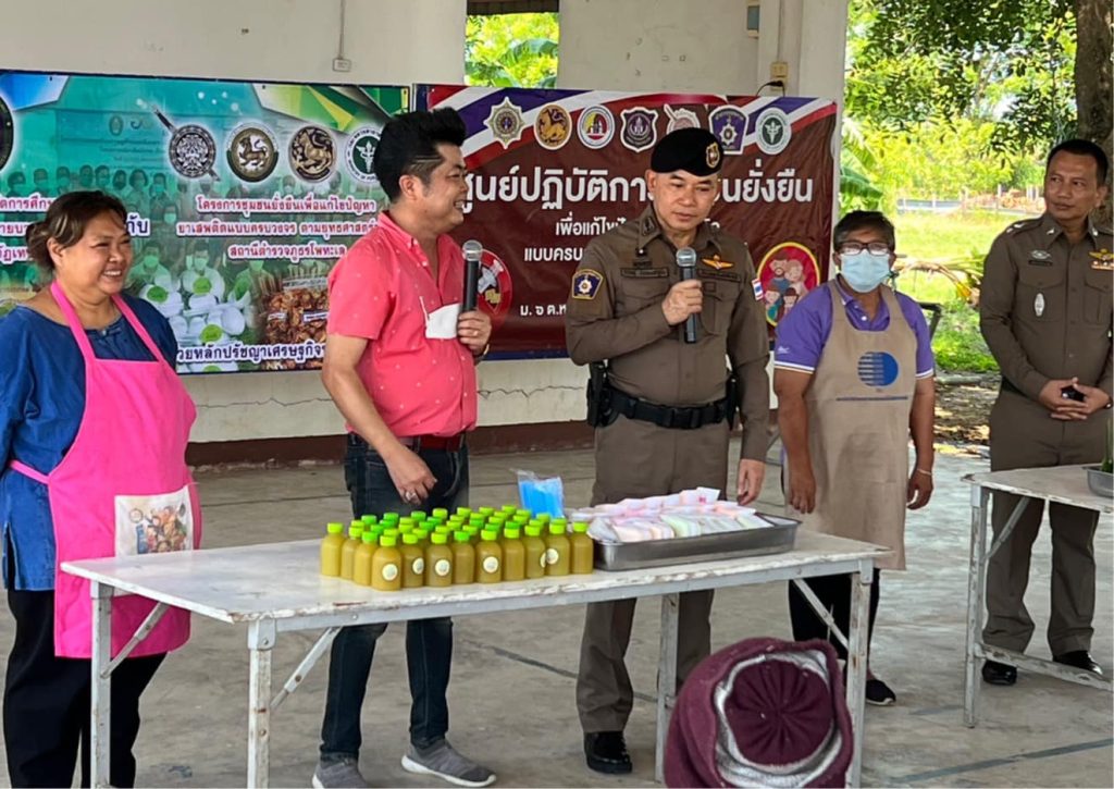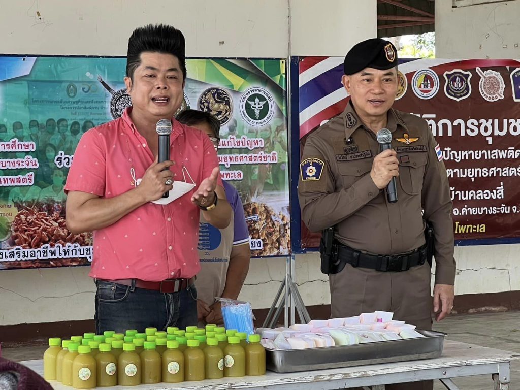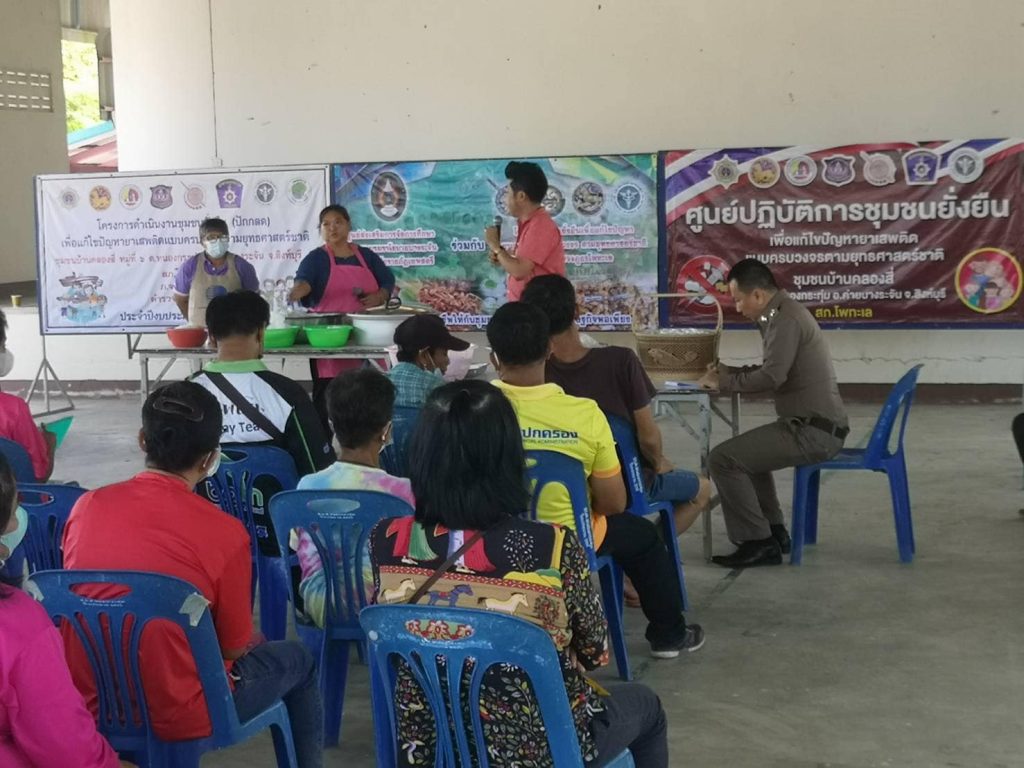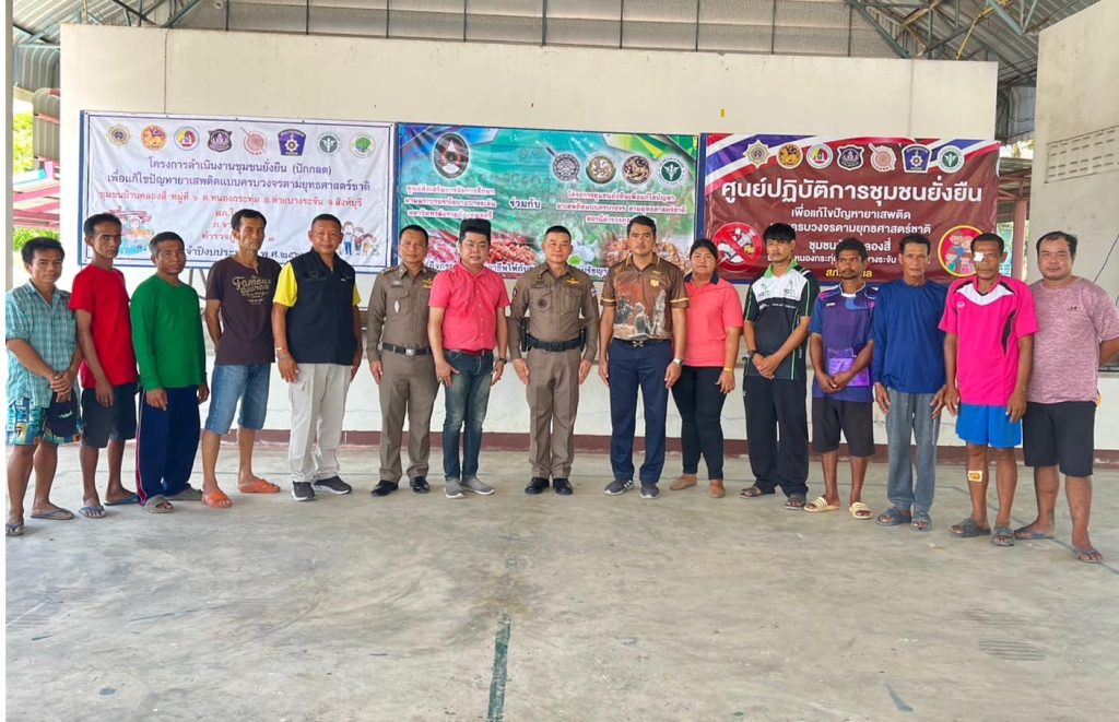 วันนี้ 1 มิถุนายน พ.ศ. 2566 เวลา 09:00 น. พล.ต.ต.วีรวิชญ์ บัวประเสริฐยิ่ง ผบก.ภ.จว.สิงห์บุรี ,พ.ต.ท.ณัฐพัชร์ สังข์ประเสริฐ สว.สภ.โพทะเล , ดร.ภาสกร รอดแผลง ผู้ช่วยอธิการบดีมหาวิทยาลัยราชภัฎเทพสตรี (ประธาน กต.ตร.สภ.โพทะเล),นายณรงค์ศักดิ์ แก้วทองมา ปลัดอำเภอค่ายบางระจัน,นายแดง จังสถิตย์ นายก อบต.หนองกระทุ่ม,นางปราณี เกตชนก ผอ.รพ.สต.หนองกระทุ่ม, น.ส.เบญจมาศ เหมือนแก้วผู้ใหญ่บ้านหมู่6 ต.หนองกระทุ่ม พร้อมด้วยข้าราชการตำรวจ ชุดชุมชนยั่งยืน สภ.โพทะเล ได้ร่วมกันจัดกิจกรรมการส่งเสริมอาชีพ ให้แก่ประชาชนและผู้เข้ารับการบำบัดตามโครงการชุมชนยั่งยืนเพื่อแก้ไขปัญหายาเสพติดแบบครบวงจร ตามยุทธศาสตร์ชาติ บ้านคลองสี่ ณ อาคารเอนกประสงค์ อบต.หนองกระทุ่ม อ.ค่ายบางระจัน จ.สิงห์บุรี