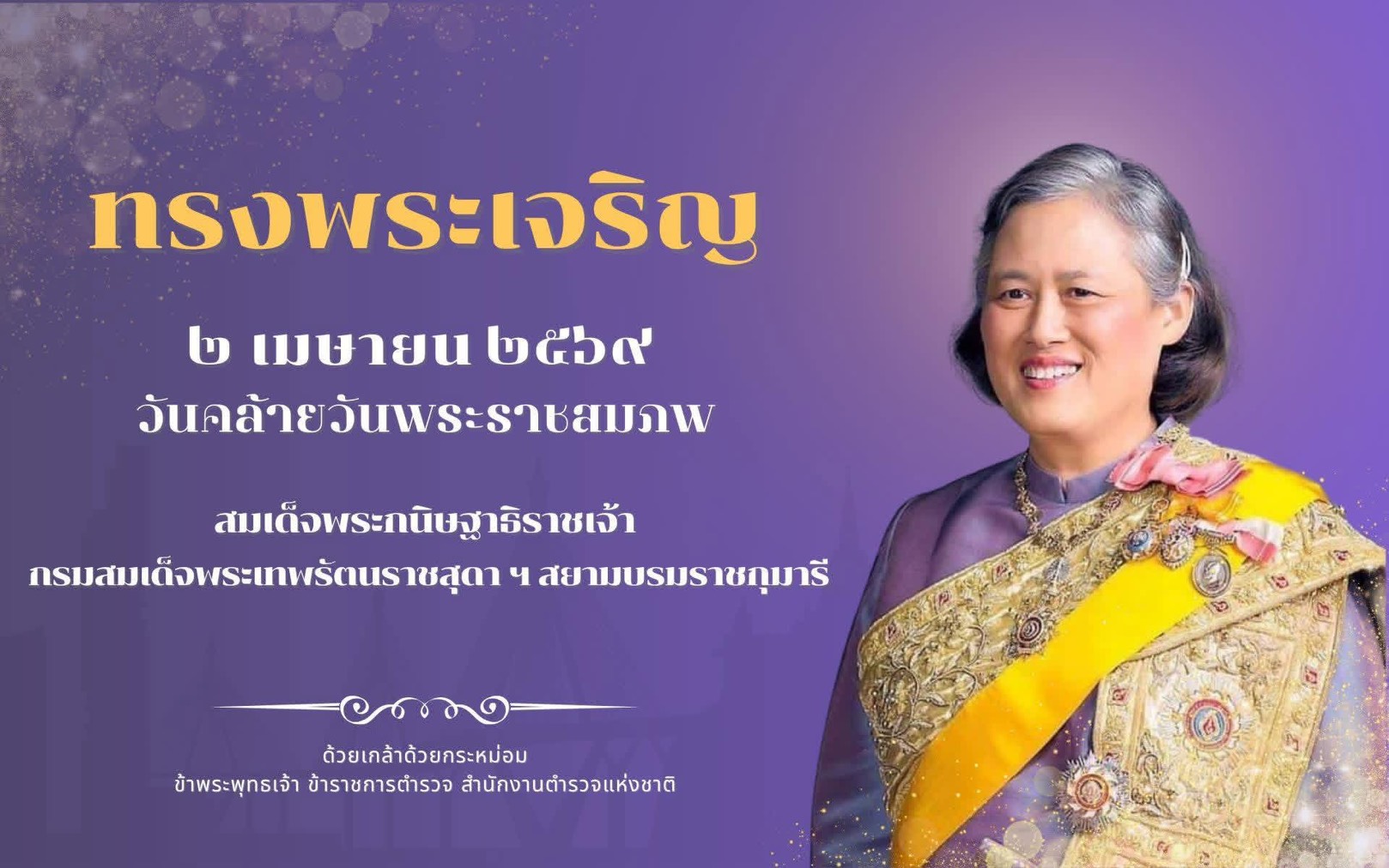 ทรงพระเจริญ ๒ เมษายน ๒๕๖๙ วันคล้ายวันพระราชสมภพ สมเด็จพระกนิษฐาธิราชเจ้า กรมสมเด็จพระเทพรัตนราชสุดา